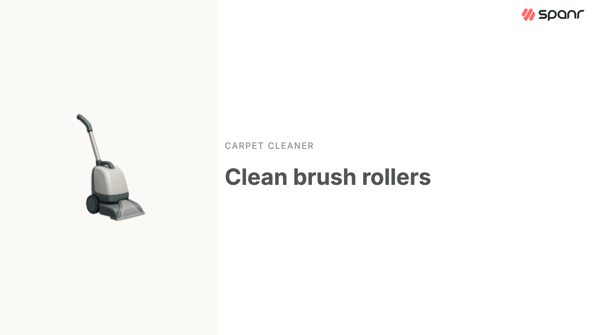 In this video, Spanr Designs walks you through cleaning your carpet cleaner brush rollers in a few clear steps: