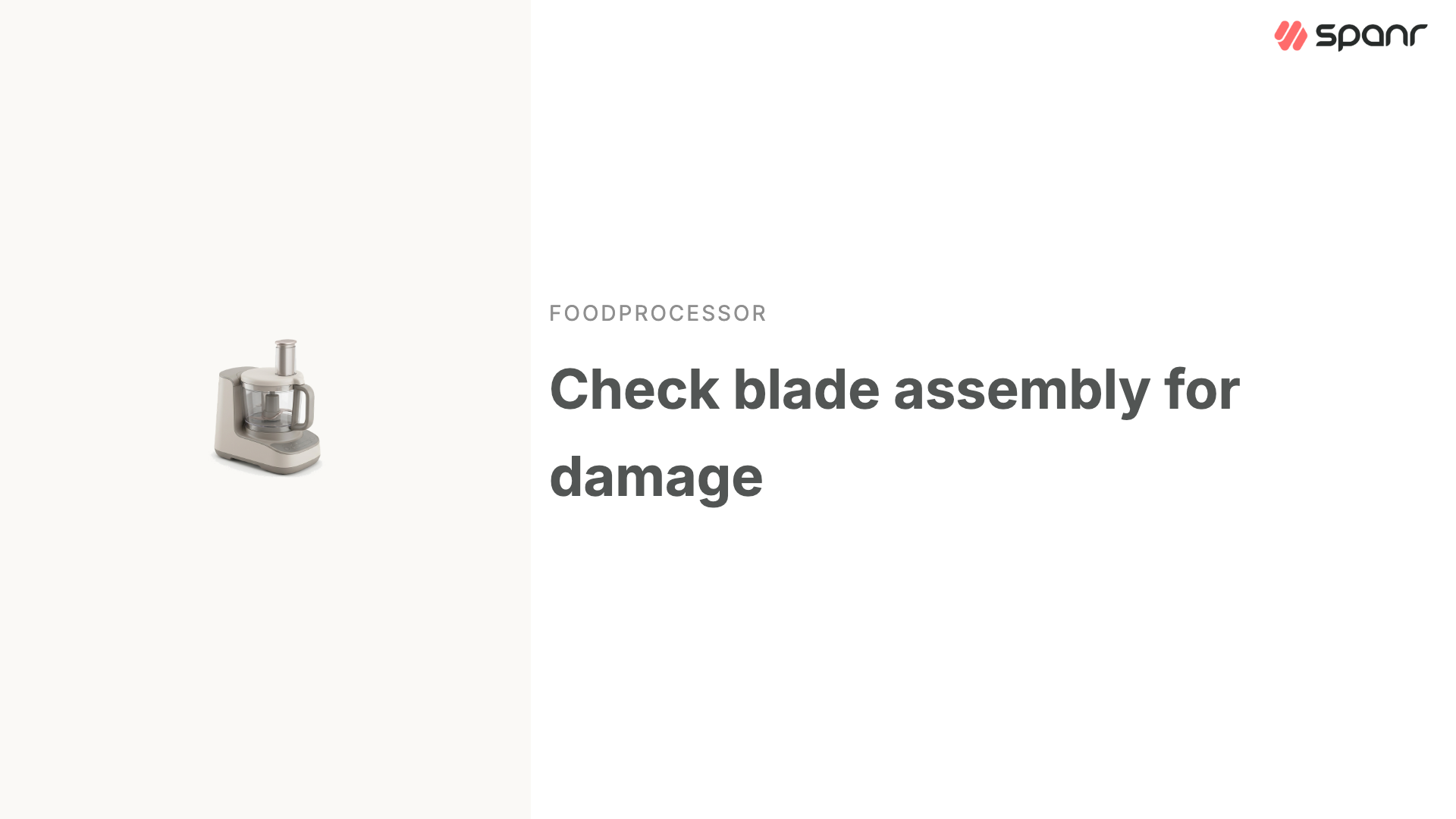 In this video, Spanr Designs walks you through inspecting your food processor blade assembly in a few clear steps: